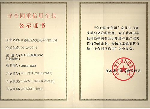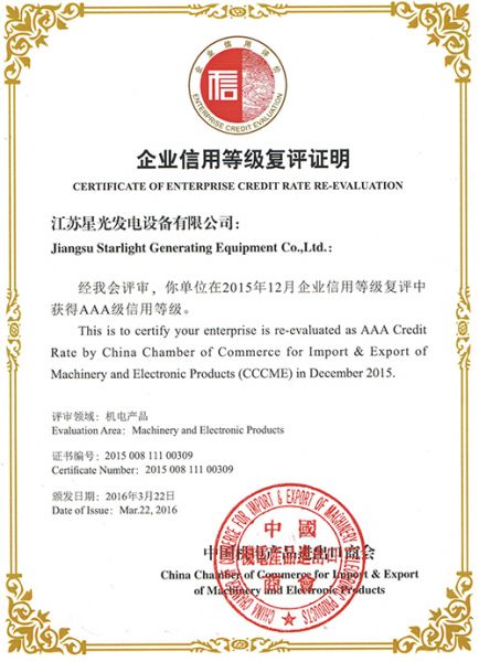 | 持证单位: 江苏星光发电设备有限公司 |