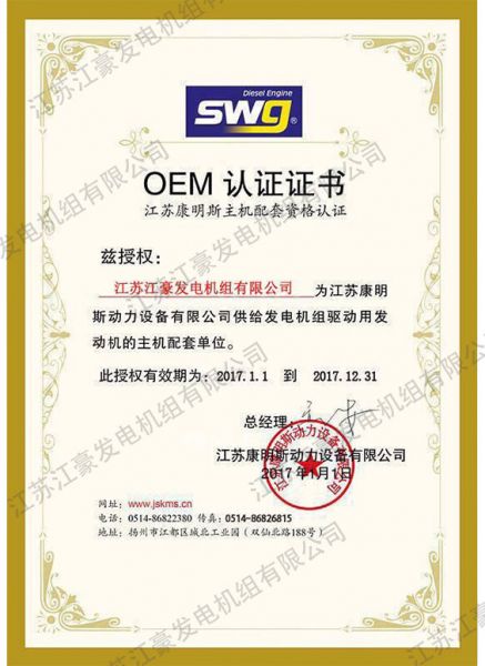 产品名称: 江苏康明斯OEM授权书 |