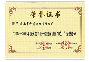 产品名称: “2014-2015年度煤炭工业十佳选煤设备制造厂”荣誉称号 |
