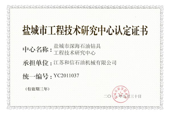 深海石油钻具研究中心证书