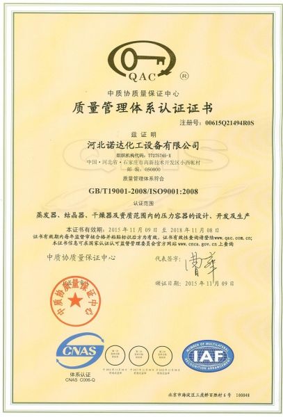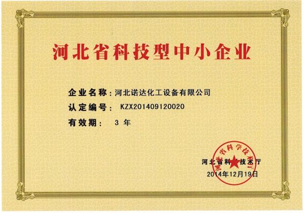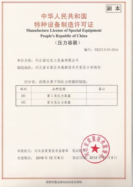 | 持证单位: 河北诺达化工设备有限公司 |