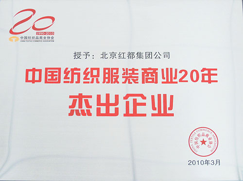 产品名称: 中国纺织服装商业20年杰出企业