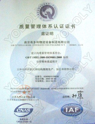 | 资质单位: 南京有多利物流设备制造有限公司 |